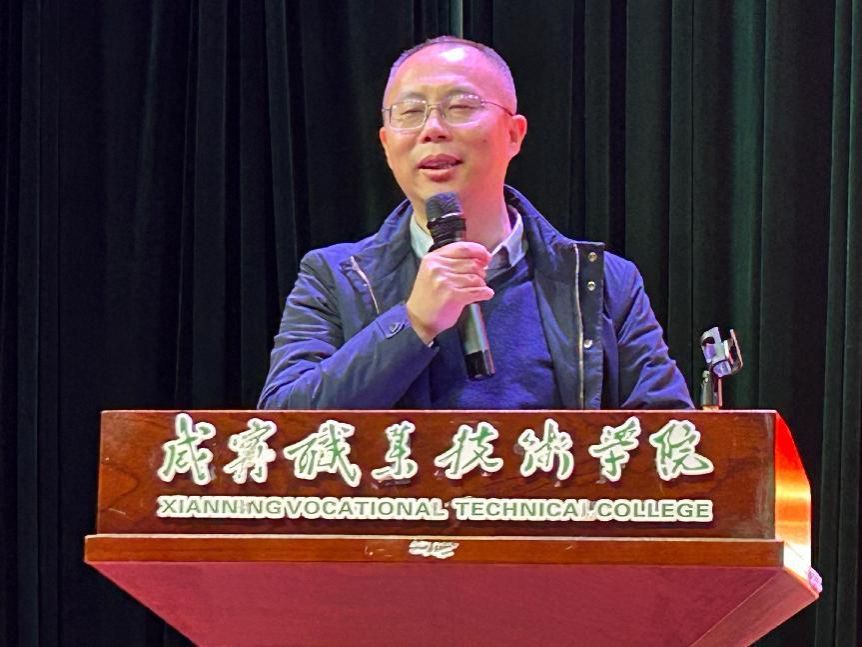 颁奖环节结束后,广东明德升科农牧有限公司技术部经理蓝天生又为全体师生作了一场精彩的报告,他结合自己工作实际,勉励同学们要认清自我,勤练本领,树立正确的人生观、就业观。