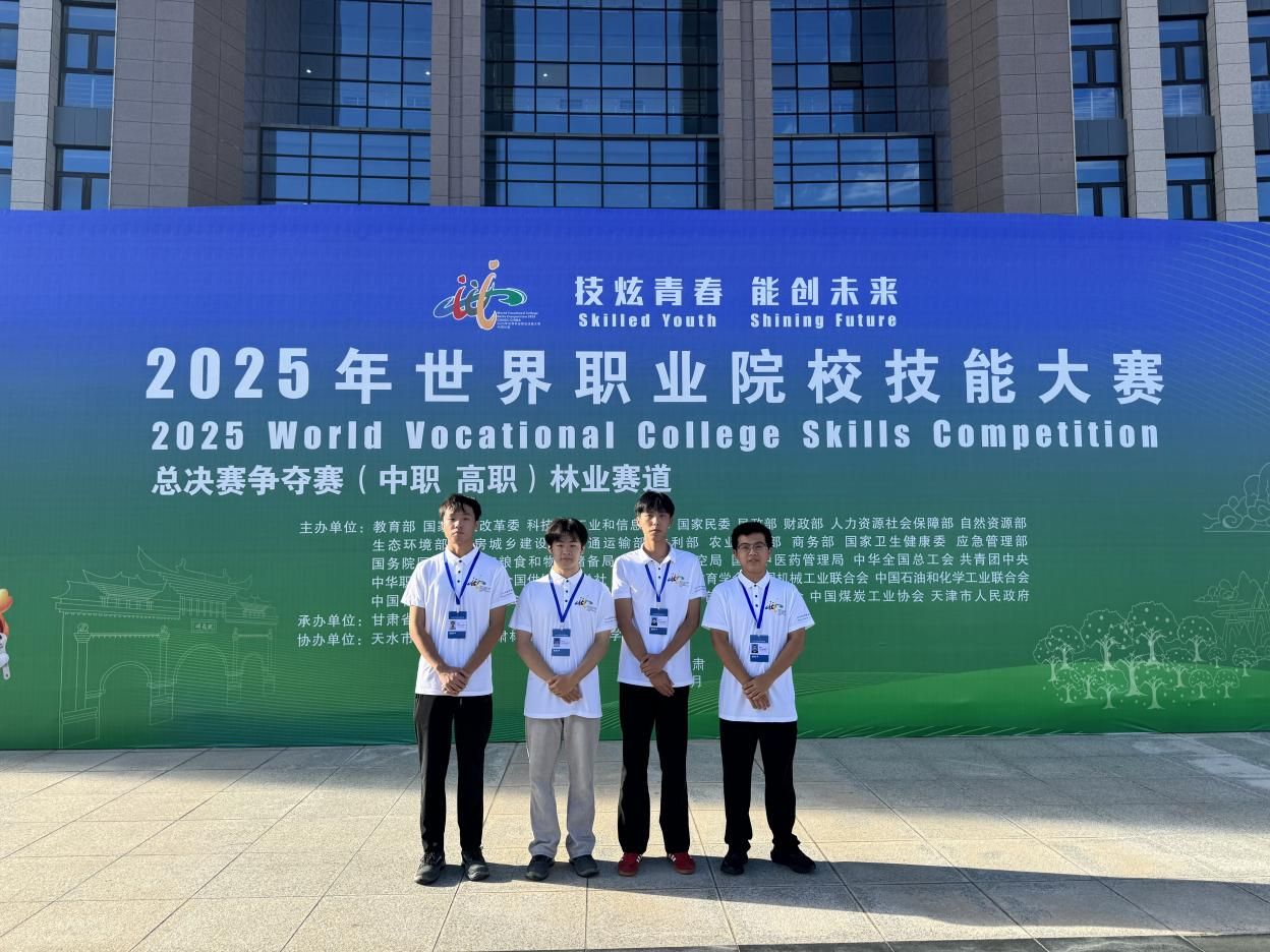 8月26日至29日,世界职业院校技能大赛总决赛争夺赛林业赛道(高职组)在甘肃林业职业技术大学圆满举办。来自全国80余所高职院校的340名选手同场竞技,切磋技艺、比拼实力。十大网投网投十大信誉可靠平台2023级园林技术专业学生黄俊儒、张以锦、刘利源、郭鑫广组成的代表队发挥出色,荣获银奖佳绩。