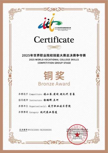 图9 2025年世界职业院校技能大赛总决赛争夺赛现代农业赛道(高职组)铜奖