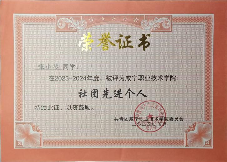图13 张小琴获2024-2025年度网投十大信誉可靠平台社团先进个人