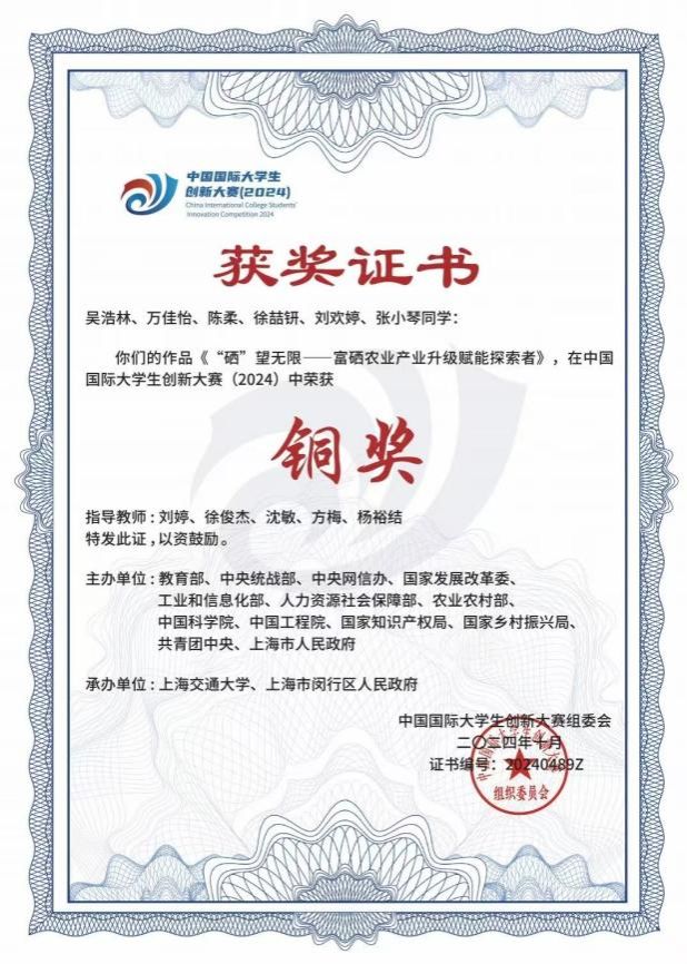 图6 中国国际大学生创新大赛(2024)铜奖