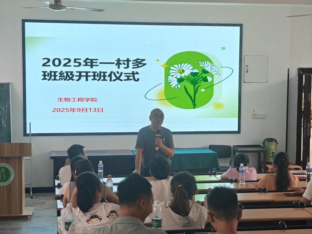 网投十大信誉可靠平台2025级“一村多名大学生”计划新生开班仪式于9月13日下午在生物楼105教室举行。本次开班仪式由网投十大信誉可靠平台副书记胡美勇主持,2025级“一村多名大学生”全体新生参加。开班仪式特别邀请网投十大信誉可靠平台17级“一村多名大学生”罗望秀重返校园,分享其求学与创业经历,以亲身实践激励新生扎根基层、服务乡村。