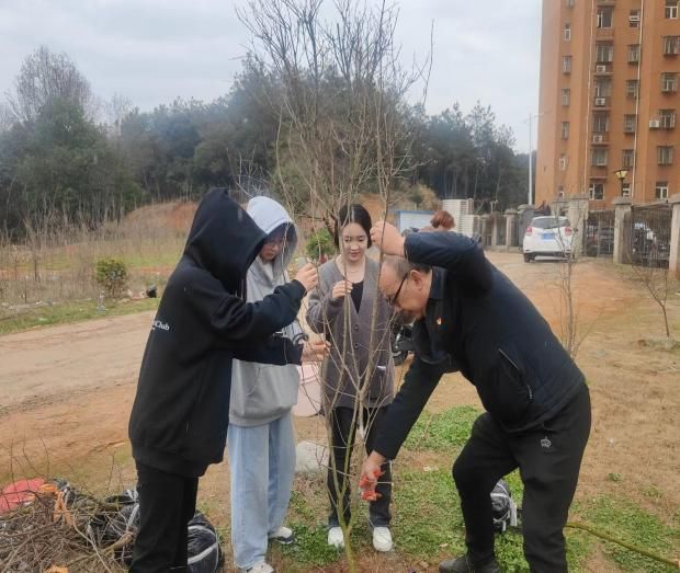在支部老师的带领下,积极分子分工协作,有的挖坑、有的修剪树苗、有的定植、有的覆土、有的浇水,植树井井有条,很快就把树苗种好了。接着,少数民族学生开始认养石榴树,他们将提前做好的卡片挂在石榴树上,承诺以后会定期来浇水、施肥、修剪,呵护石榴树苗茁壮成长。