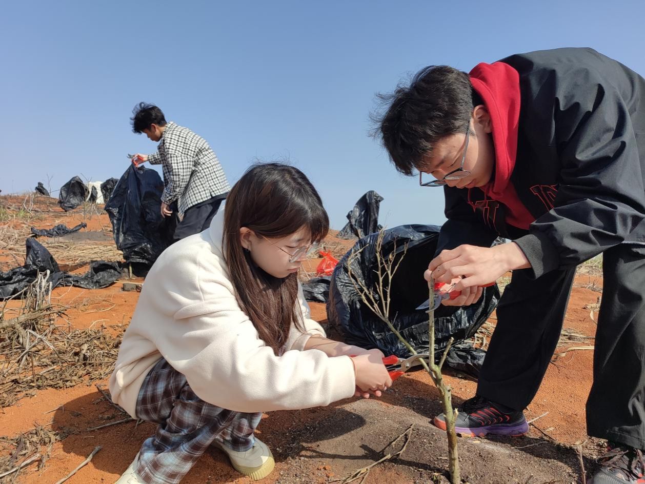 长寿村种有柑橘几十亩,品种为爱媛28号,该品种是阳新县兴新杂柑专业合作社选育的中晚熟杂交柑橘品种。爱媛28号柑橘花芽分化较多,以春梢、早秋梢结果为主。该品种不耐寒,温度达到13度开始生长,零下3度到零下5度时易发生冻害。今年2月下旬,咸宁地区遭遇极端暴雪天气,低温持续时间较长,许多柑橘树苗冻伤,甚至冻死。徐鹏辉一行来到柑橘地查看柑橘苗冻害情况,发现裸露的小苗基本都被冻死,用黑色塑料袋包裹的苗木,幼嫩枝条已经冻死,老熟枝条还具有萌发潜力。徐鹏辉建议冻死的小苗全部除掉,补种规格相近的苗木;套袋的苗木全部摘袋,剪除冻死嫩枝和冻伤枝条,喷施2-3次氨基酸水溶肥,促使受伤苗木快速恢复生长。