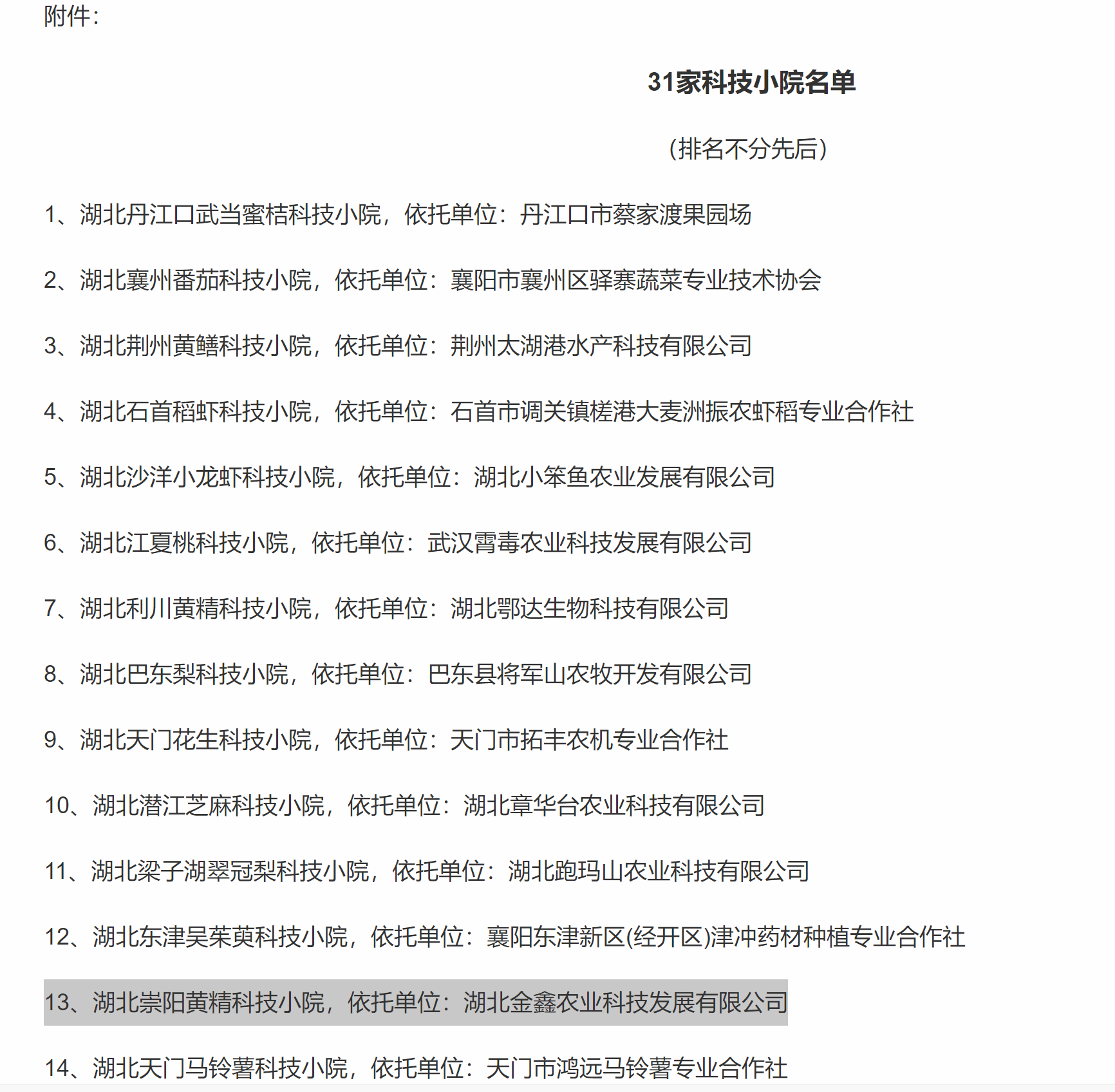 根据《教育部办公厅 农业农村部办公厅 中国科协办公厅关于支持建设第二批科技小院及科技小院集群的通知》,2024年7月,十大网投依托湖北金鑫农业科技发展有限公司共同申报“湖北崇阳金星黄精科技小院”,获得中国农村专业技术协会审批通过。成为咸宁市第2家国家级科技小院。