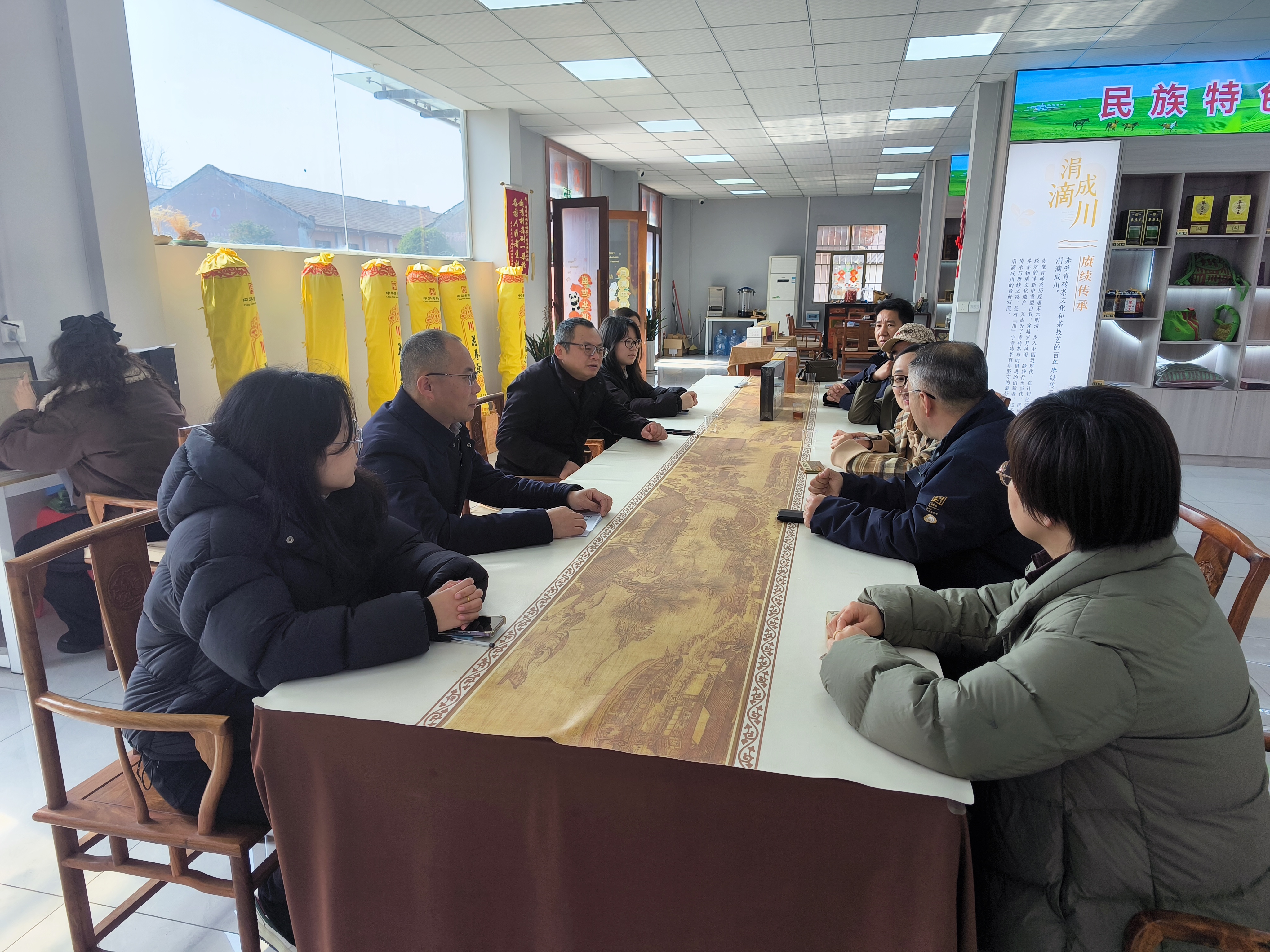 作为本次调研的核心站点,赵李桥茶叶有限公司让团队深度领略了“中华老字号”与“国家级非物质文化遗产”的双重魅力。该公司作为赵李桥砖茶制作技艺的传承保护单位,其技艺已入选联合国教科文组织人类非物质文化遗产代表作名录,拥有近百年制茶历史。