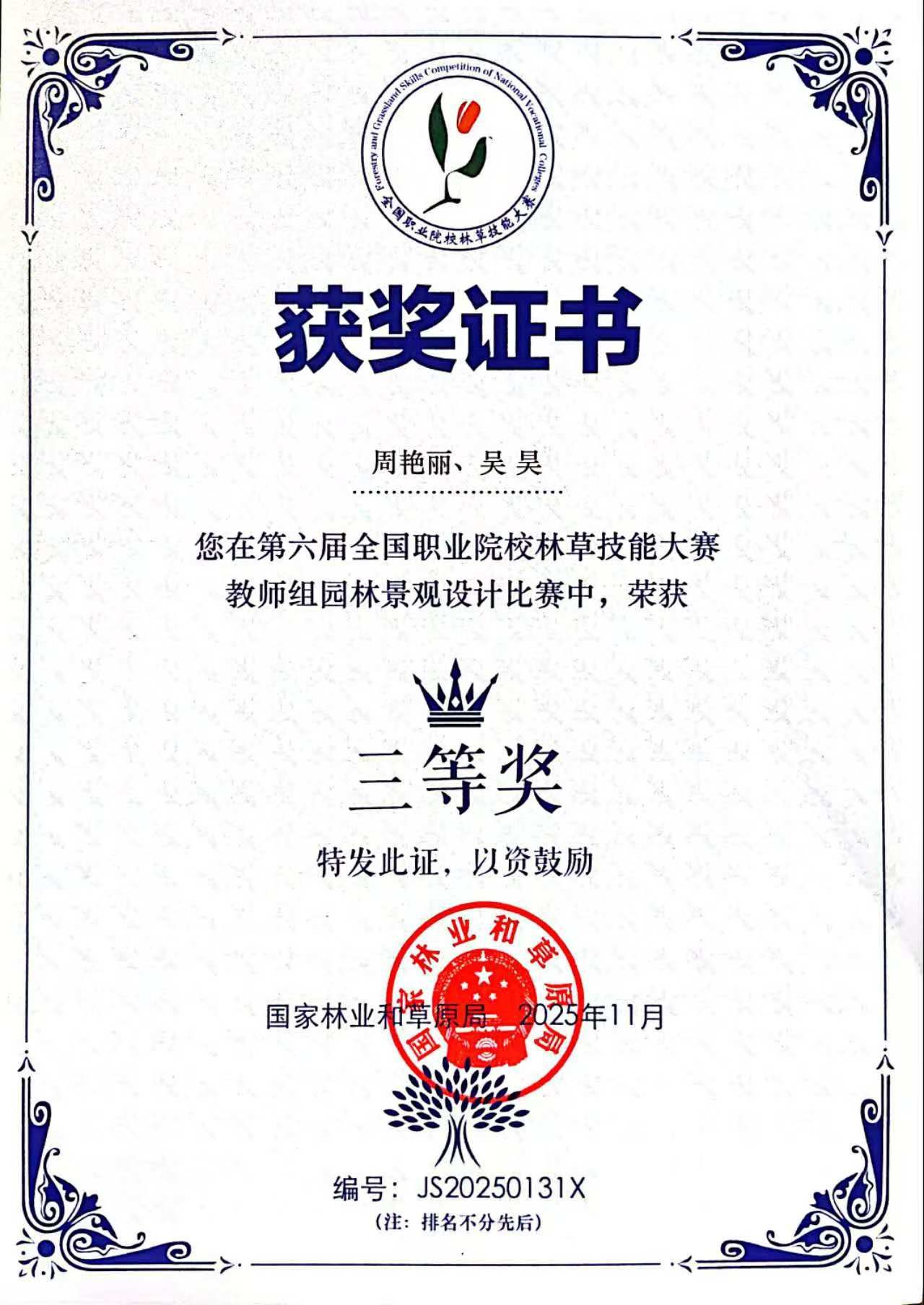 喜报:十大网投教师荣获全国林草技能大赛教师赛三等奖