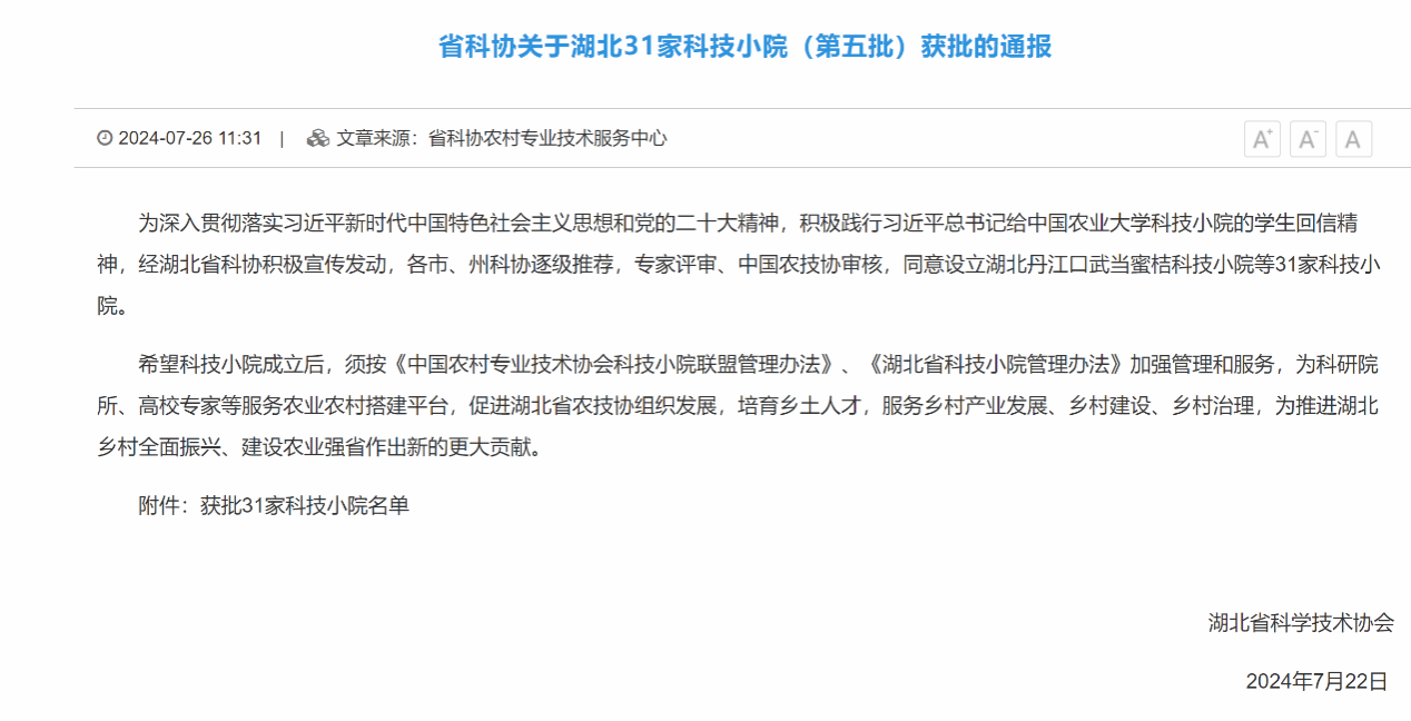 根据《教育部办公厅农业农村部办公厅中国科协办公厅关于支持建设第二批科技小院及科技小院集群的通知》,2024年7月,十大网投依托湖北金鑫农业科技发展有限公司共同申报“湖北崇阳金星黄精科技小院”,获得中国农村专业技术协会审批通过。...