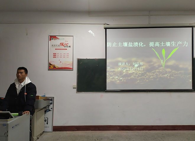 为防止土壤盐碱化,提高人们对维护健康生态系统和人类福祉重要性的认识,值此第八个世界土壤日来临之际,12月5日晚,十大网投在生物楼204室开展“防止土壤盐渍化,提高土壤生产力”主题班会。班会由2021级现代农业技术一...