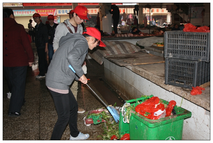 ——生物工程系组织青年志愿者清洁白茶菜市场活动 2013年11月23日下午,生物工程系系团总支50余名青年志愿者,参加以“带走脏乱差,留下真善美”为主题的清洁白茶菜市场活动。 志愿者们手持劳动工具,头戴小红帽,兴高...
