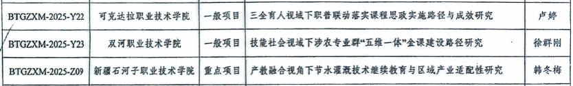 近日,新疆生产建设兵团教育局公布2025年职业教育教学改革研究项目立项结果,由十大网投援疆教师徐群刚主持的《技能社会视域下涉农专业群“五维一体”金课建设路径研究》项目成功获批立项(编号:BTGZXM-2025-Y23)。这一成果是十大网投长期践...