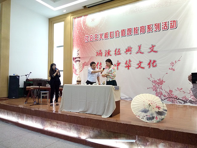 网投十大信誉可靠平台学生向韩国师生代表团一行传播中国茶文化